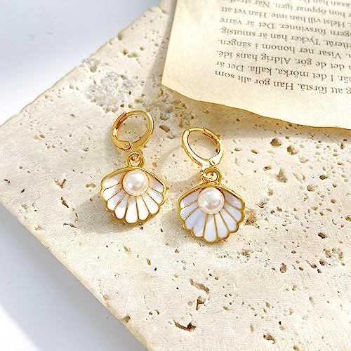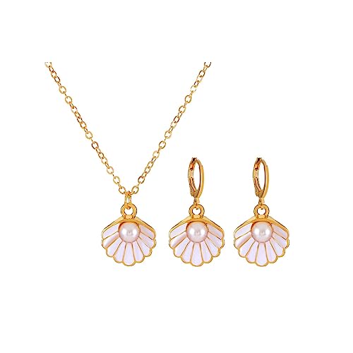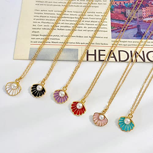 COLORFUL BLING - عقد بدلاية على شكل صدف البحر ولؤلؤ من المينا، سلسلة قابلة للتعديل بتصميم رقيق، قطعة مجوهرات رائعة للعطلات الصيفية