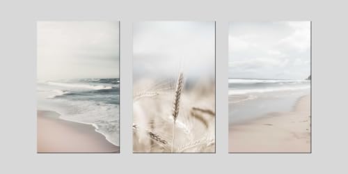 Al Adham - مجموعة لوحات فنية جدارية بتصميم شاطئ البحر من 3 قطع، ملصقات رسم المناظر الطبيعية للتزيين غرفة المعيشة وغرفة النوم وغرفة الطعام والمكتب وديكور المنزل (50×70 سم)