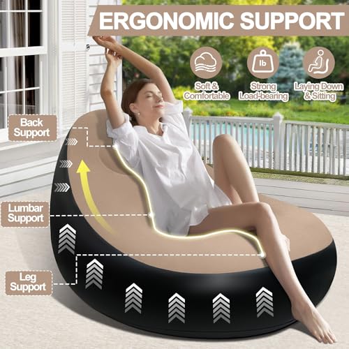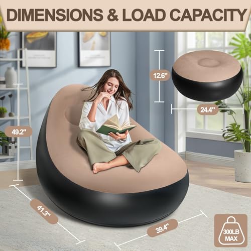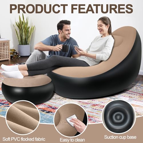SeaSlep - كرسي قابل للنفخ مع مسند للقدمين، أريكة هوائية قابلة للنفخ للبالغين بسطح قطيفة، مقعد هوائي مريح، أريكة هوائية محمولة مقاومة للماء للتخييم (بدون مضخة) من سي سليب، لون بني