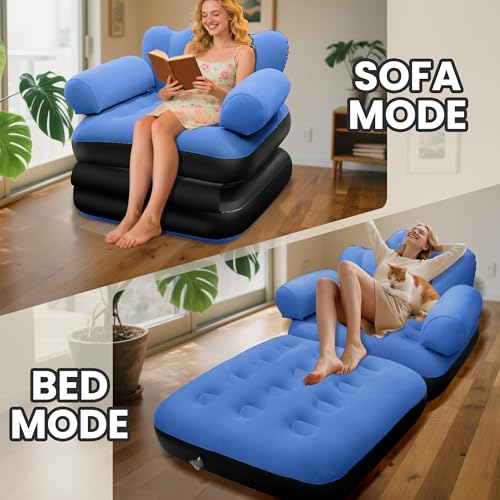 - تعدد الاستخدامات 2 في 1: قم بتحويل هذه الكنبة الهوائية دون عناء لتلبية احتياجات الاسترخاء أو النوم؛ إما تحويلها إلى سرير واسع بحجم كوين، يدعم ما يصل إلى 330 باوند، أو طيها لتصبح أريكة مريحة منفوخة حسب الحاجة. سواء كنت تسترخي فقط أو تحتاج إلى مساحة إضافية لضيوف المنزل، فإن هذه الأريكة القابلة للنفخ هي الحل المثالي 2 في 1 للمنزل أو التخييم