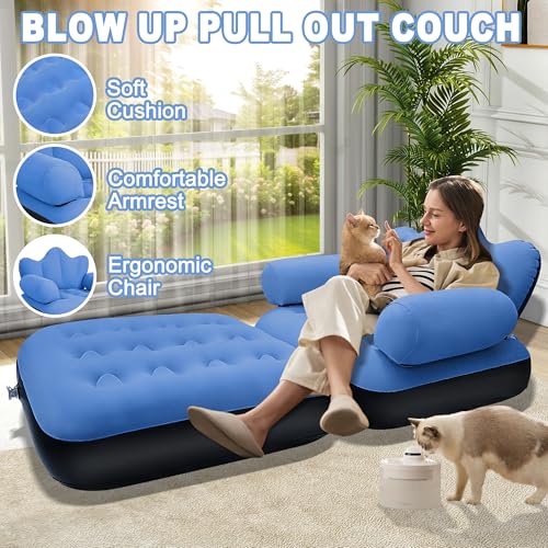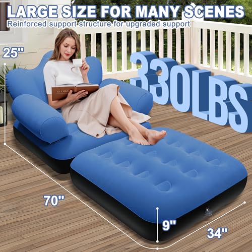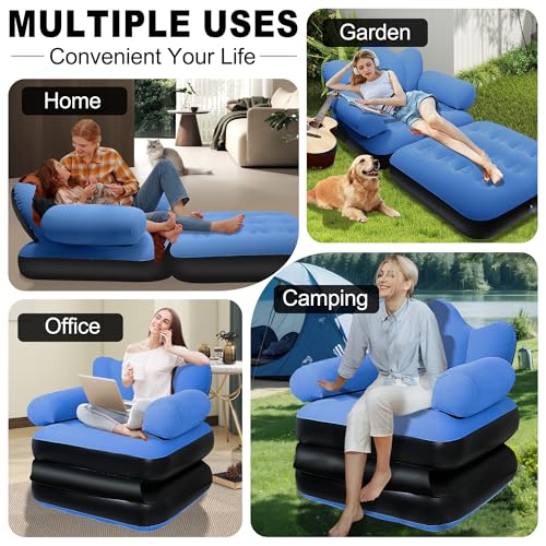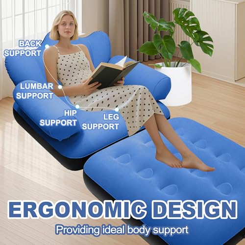 - راحة فائقة: استمتع بالشعور الفاخر لسرير الأريكة الهوائي الخاص بنا مع لوح أمامي مدمج، مما يوفر دعمًا ثابتًا لرأسك ورقبتك وظهرك؛ توفر المادة المريحة والمدفقة سطحًا مريحًا للجلوس، وتضمن تجربة استخدام مثالية، يمكنك استخدامه للاسترخاء لمشاهدة التلفزيون أو لعب ألعاب الفيديو. بالإضافة إلى ذلك، فإن الجزء السفلي من الكرسي القابل للنفخ مصنوع من مواد بلاستيك PVC الجديدة، وهي أكثر متانة ومقاومة للاهتراء - ليس من السهل تشويهها