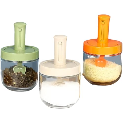 Generic - حاويات توابل - برطمانات توابل زجاجية متعددة الالوان 300 مل مع غطاء وملعقة وحامل ملح تلسكوبي لطاولة المطبخ (3 قطع من الالوان المعروضة)