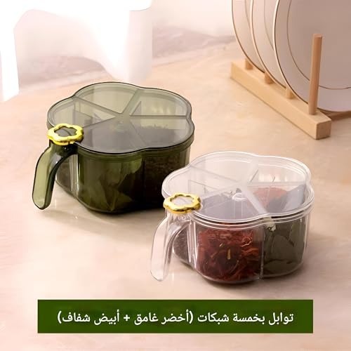 - 4 مساحات تخزين للتوابل والأعشاب: يتميز المنظم بأربع أقسام منفصلة، مثالي لتخزين مختلف التوابل أو الأعشاب أو البهارات، مما يحافظ على تنظيمها بدقة ويسهل الوصول إليها.
