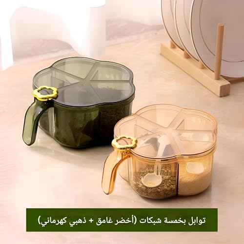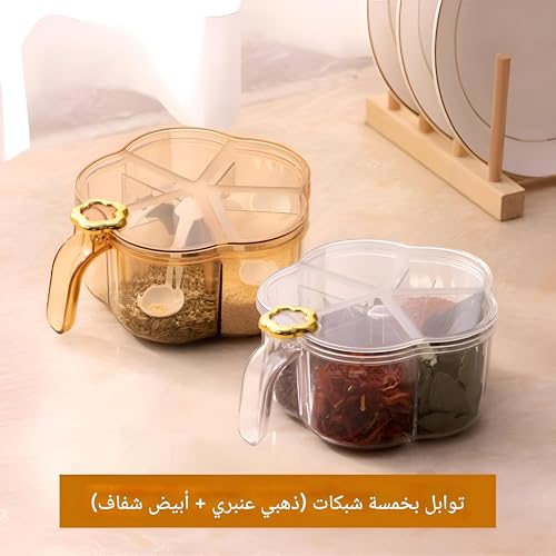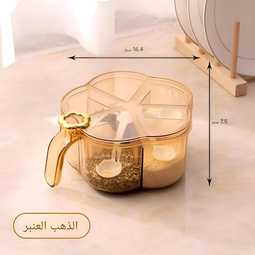 - ملعقة متضمنة في كل مساحة تخزين: تأتي كل مساحة تخزين مع ملعقة صغيرة، مما يجعل من السهل غرفها وإضافة الكمية المطلوبة من التوابل دون أي فوضى أو متاعب.