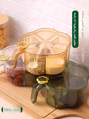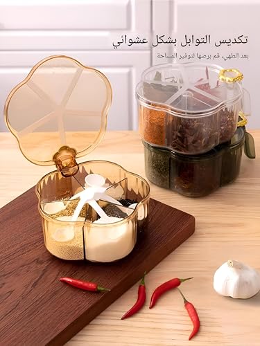 Generic - منظم توابل - صندوق تخزين توابل أكريليك مكون من 4 أقسام مع غطاء وملاعق لتنظيم توابل المطبخ بطريقة انسيابية وتوزيع التوابل بسهولة