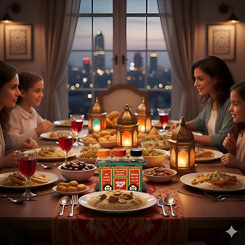 - تعد القاعدة المتينة والأنيقة قطعة فنية بحد ذاتها؛ فهذا الطقم ليس مجرد اكسسوار عملي للمطبخ فحسب، بل هو قطعة ديكور رمضانية ساحرة بامتياز.