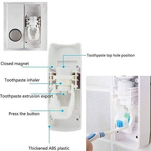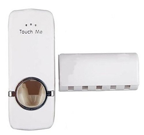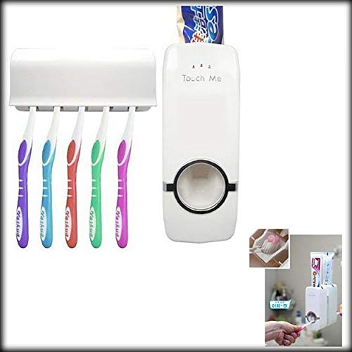 SEASPIRIT - موزع معجون الأسنان الآلي المثبت على الحائط من البلاستيك بدون استخدام اليدين مع حامل بـ5 فتحات منفصلة لفرش الأسنان من سيسبيريت، متعدد الألوان