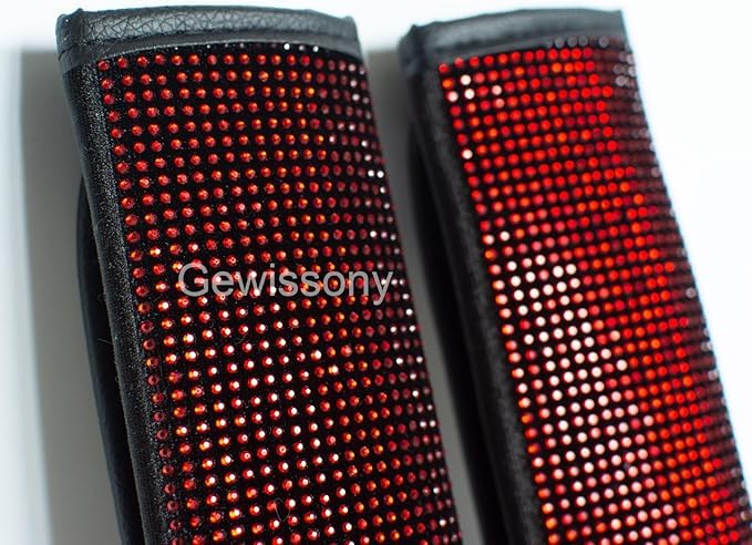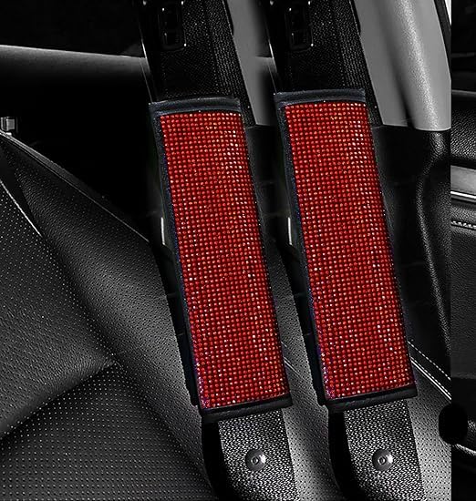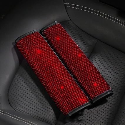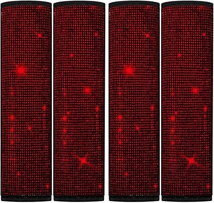 Generic - وسادات كتف لحزام الأمان ، اغطية مزينة بالكريستال اللامع لحزام أمان السيارة، اكسسوارات ديكور السيارة للنساء (أحمر)، عبوة من 4 قطع - SACAR