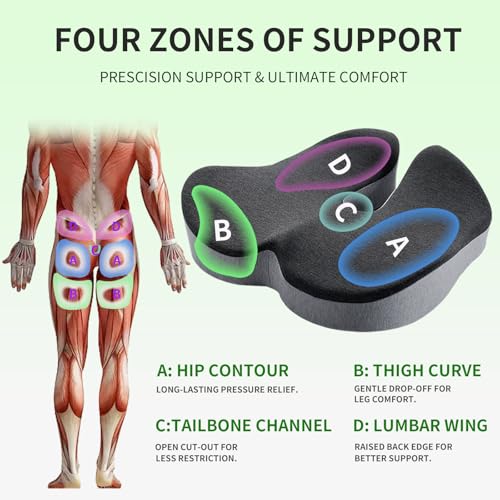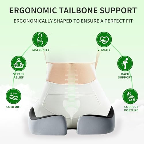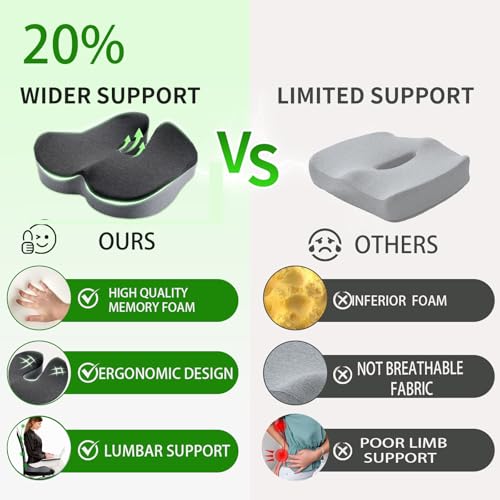 Gonexway - وسادة مقعد فاخرة من الميموري فوم لكرسي المكتب، وسادة مقعد السيارة وكرسي المكتب، وسائد مقعد لكراسي المكتب، تخفيف الام العصعص ودعم الظهر (اسود ورمادي)