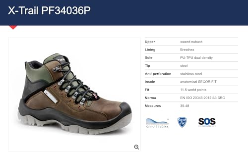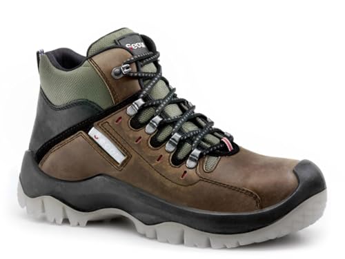 Generic - حذاء سيفتي إيطالي من الجلد للعمل والمشي لمسافات طويلة من سيكور، لون بني وأخضر زيتوني، مقاس 41 EU