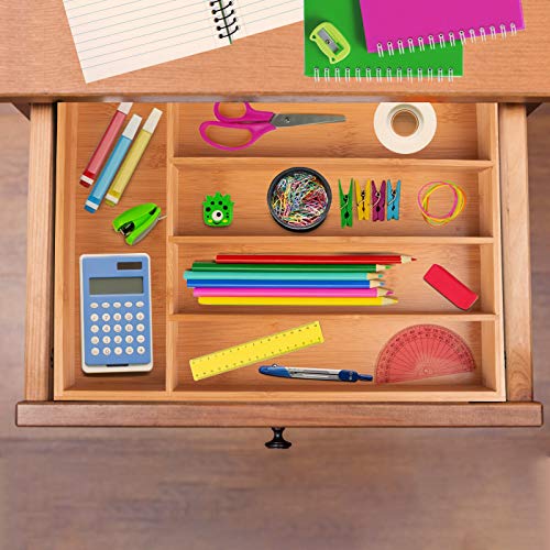Secura - منظم أدراج للمطبخ، حامل أدوات تناول الطعام من الخيزران للمكياج والمجوهرات وأدوات المائدة، صينية للمطبخ، المكتب، الحمام، الخزانة ودولاب الملابس من سيكيورا