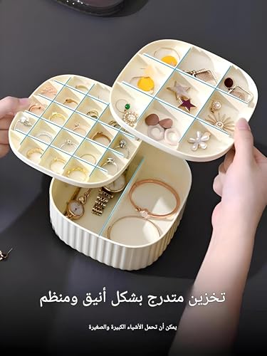 - تحتوي كل طبقة على مساحات تخزين متعددة بأحجام مختلفة، مما يوفر مساحات مخصصة للأقراط والخواتم والأساور والقلائد. يمنع هذا التصميم المدروس التشابك ويساعد على إبقاء كل ملحق مرئيًا ويسهل الوصول إليه في جميع الأوقات.