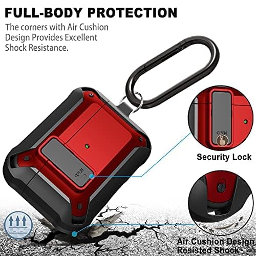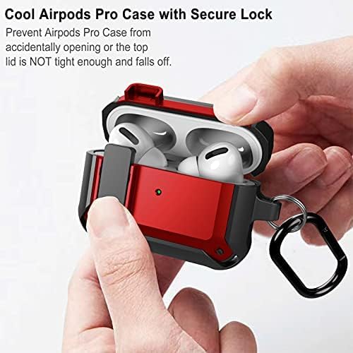 ELMO3EZZ - جراب حماية صلب ومطور محكم الغلق لعلبة سماعات ابل ايربودز برو اللاسلكية مضاد للصدمات، مناسب للرجال والنساء من المعز، أحمر
