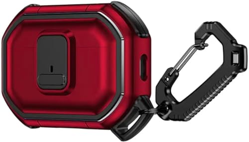 Generic - جراب حماية بمشبك قفل آمن لسماعات ايربودز برو 2 الجيل الثاني 2022/2023 مع سلسلة مفاتيح (احمر)، ألياف كربونيه