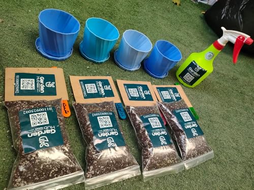 • مجموعة زراعة البذور ، 4 أصص ، تربة زراعية مخصبة ، رشاش صغير