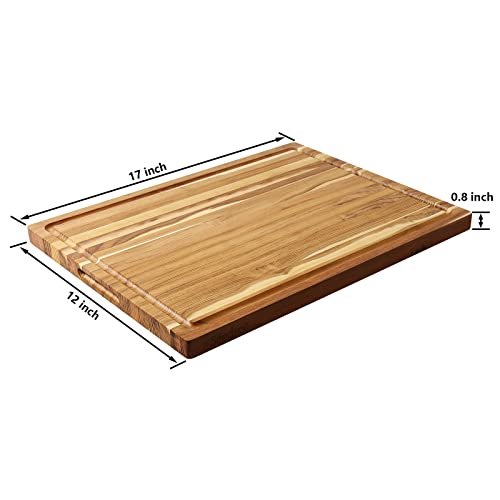 Seedsec - لوح تقطيع كبير من خشب الساج للمطبخ من سيدسيك، لوح تقطيع خشبي قابل للعكس مع اخاديد عصير ومقابض، مثالي لتقطيع اللحوم والخضروات والفواكه والخبز والجبن، 17×12 انش