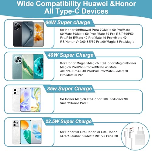 Seefey - شاحن عالمي سوبر تشارج بقوة 66 واط لأجهزة هونر 200 لايت/ 200 برو/ 90 لايت/ ماجيك 6 لايت، مزود بكيبل بمنفذ USB نوع C بتيار 6 امبير بطول 1 م لهونر ماجيك 6 6 برو ماجيك 7 لايت X6b X8b باد 2 9 X8a X9 من