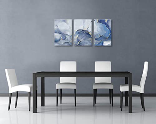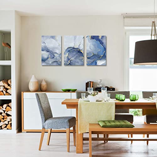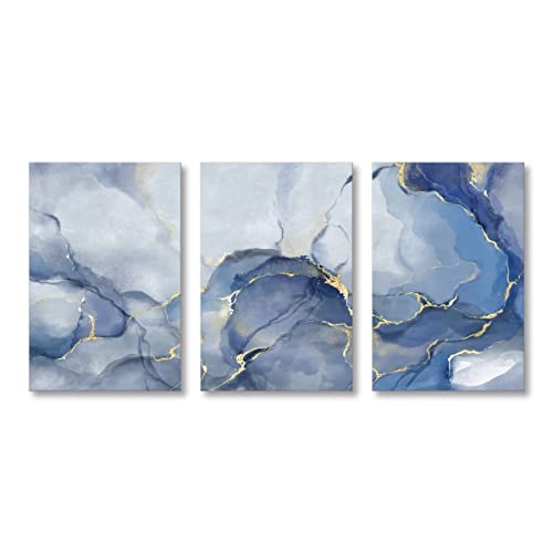 Seekland Art - لوحة فنية جدارية تجريدية من سيكلاند، لوحة فنية قماشية حديثة مطبوعة بحبر سائل بالرسم بالألوان المائية، بلون أزرق وذهبي
