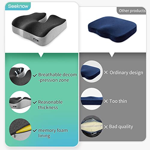 seeknow - وسادة كرسي مكتب من سينو، وسادة مقعد السيارة لتخفيف آلام عظم العصعص وأسفل الظهر وعرق النسا، وسادة للأرداف من رغوة الذاكرة، وسادة للبواسير للكرسي المتحرك وكرسي المكتب ومقعد سائق السيارة