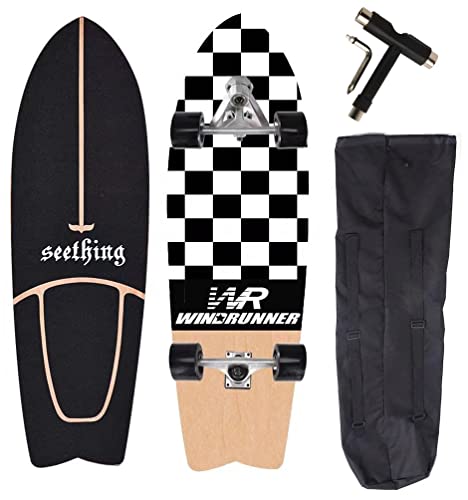 seething - لوح تزلج على الجليد سوالو سرف من سي ثينج مقاس 32 انش CX7 مع حقيبة ظهر وادوات- بلون اسود وابيض