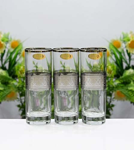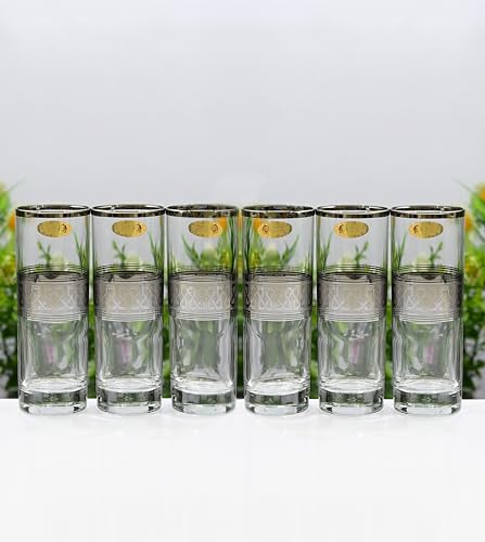- طقم أكواب بانتوجراف بنقوش إسلامية زجاج بلاتيني بشكل جذاب، 12 قطعة لـ (الشاي والماء والمشروبات الغازية الفوارة والمشروبات الغازية والسموذي والعصائر)، تصميم أنيق، علامة تجارية موثوقة من سيجاي، 143470.