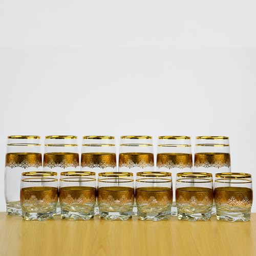 Segaey - مجموعة جديدة من 12 قطعة ادورا هاي بول والشاي مع ستارة ذهبية ديكالا / 12 قطعة / 390 سم مكعب - 255 سم مكعب/ تصميم انيق، علامة تجارية موثوقة، شكل جذاب للمياه ومشروب فوار وسموذي وكوكتيلات من سيجاي