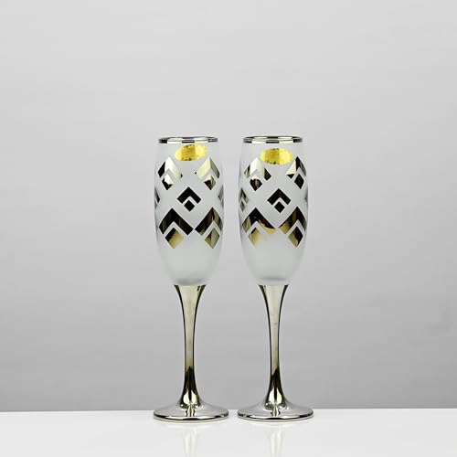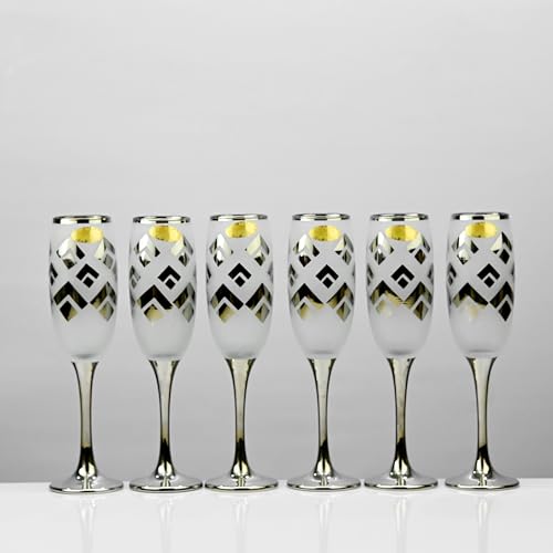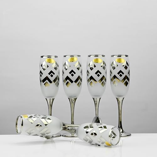 Segaey - طقم كاسات فينو فلوت بلاتينيوم من سيجاي – سعة 220 مل – عبوة من 6 قطع مزين بنقوش وحافة ذهبية بتصميم انيق بشكل جذاق من علامة تجارية موثوقة مناسب للمشروبات الغازية والعصائر وعصائر السموزي