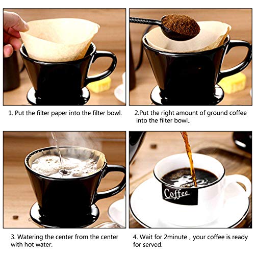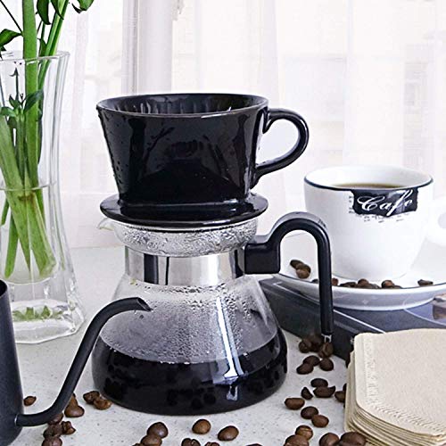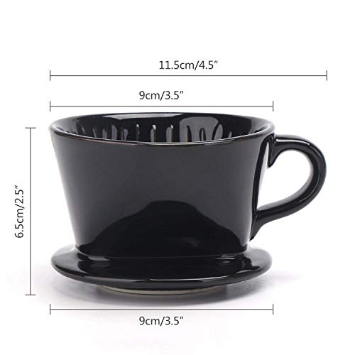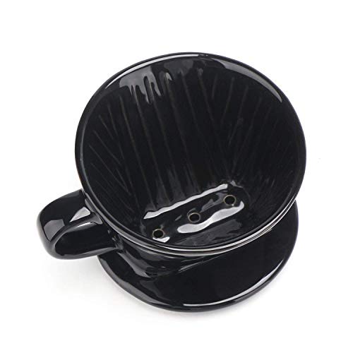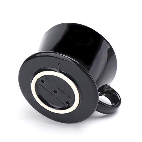 Segarty - صانعة قهوة بالسكب رقم 1، منقط قهوة من السيراميك الأسود بسعة كوب واحد، مجموعة واحدة مقاس رقم 1، حامل تنقيط مخروطي بفلتر قابل لإعادة الاستخدام، مخمر بطيء بقاعدة مسطحة بـ 3 فتحات لكل مكان من سيغارتي