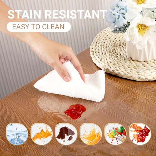 - سهل التنظيف: يتميز مفرش الطاولة الشفاف الخاص بنا بسطح أملس. مقاوم للماء والزيوت، مما يجعل التنظيف مريحًا بشكل لا يصدق ويضمن بقاء سطح طاولتك نظيفًا وصحيًا دائمًا.
