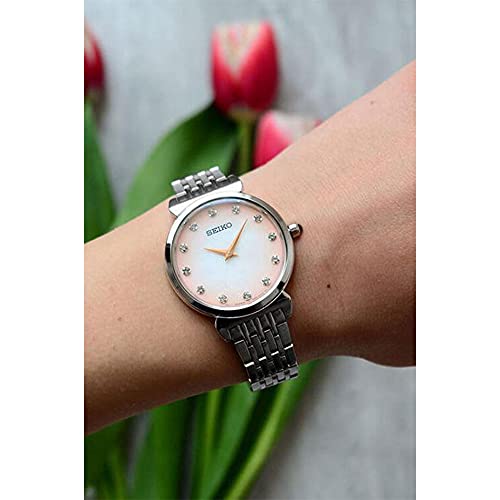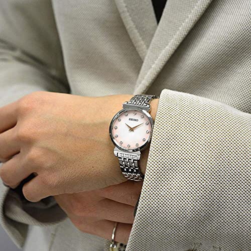 Seiko - ساعة انالوج بعقارب بمينا أسود للنساء من سيكو-SFQ803P1، فضي، سوار