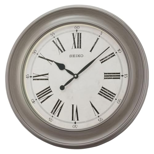 Seiko - ساعة حائط بهيكل بلاستيك بقطر 57 سم من سيكو، لون أبيض ورمادي، موديل QXA773N، تناظري