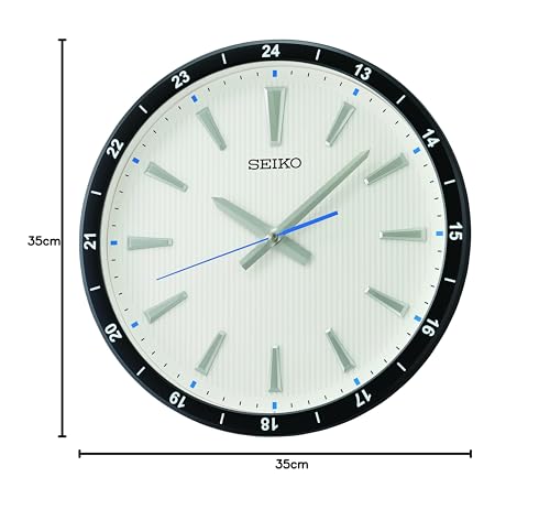 Seiko - ساعة حائط QXA802J بحركة كوارتز سويب هادئة مع جراب حماية من البلاستيك سيكو قطر 35 سم لون أبيض - أسود