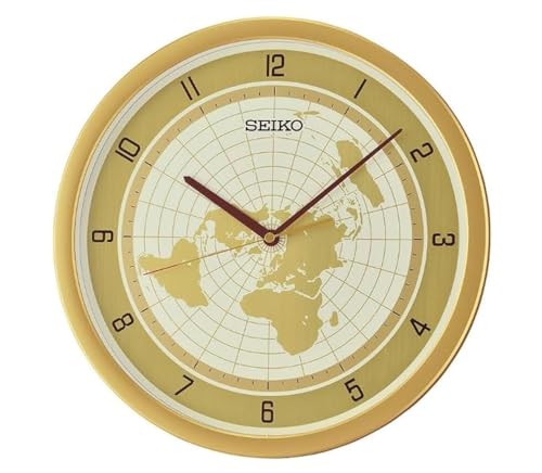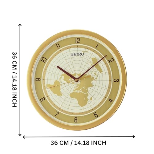 Seiko - ساعة حائط بهيكل بلاستيكي من سيكو بقطر 36.1 سم، لون ذهبي موديل QXA814G، بلاستيك الألومنيوم، تناظري