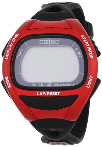 Seiko - سيكو ساعة للرجال، حركة كوارتز، شاشة رقمية، سوار مطاطي احمر -SBEF039J, شفاف