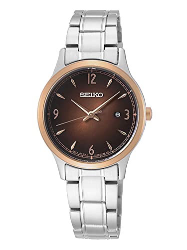 Seiko - ساعة كوارترز انالوج بسوار ستانلس ستيل للنساء من سيكو بمينا بلون بني طراز SXDH02P1 us:one size