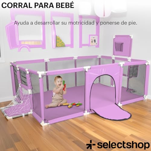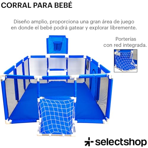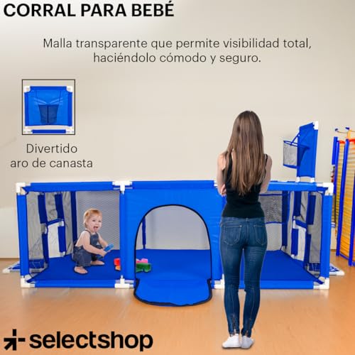 SELECTSHOP - ساحة لعب متعددة الأنشطة مخصصة للرضع والأطفال تتميز بشبك ناعم يسمح بالتهوية وتمنع السقوط وتحتوي على طارة كرة سلة ومداخل، كحلي، من سيليكت شوب