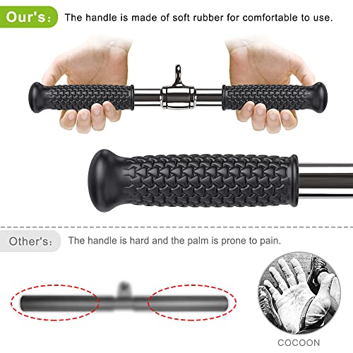- 【قضيب مستقيم دوار】قضيب السحب/الضغط مناسب لجميع أنظمة ماكينات الكابل في الجيم المنزلي والتجاري، كما أن الدوران 360 درجة يدعم تمارين الدفع للأسفل والضغط للأسفل والتجديف وتمارين الثنيات. من السهل ضبط الزاوية بدون الحاجة إلى ثني معصمك بشكل غير مريح.