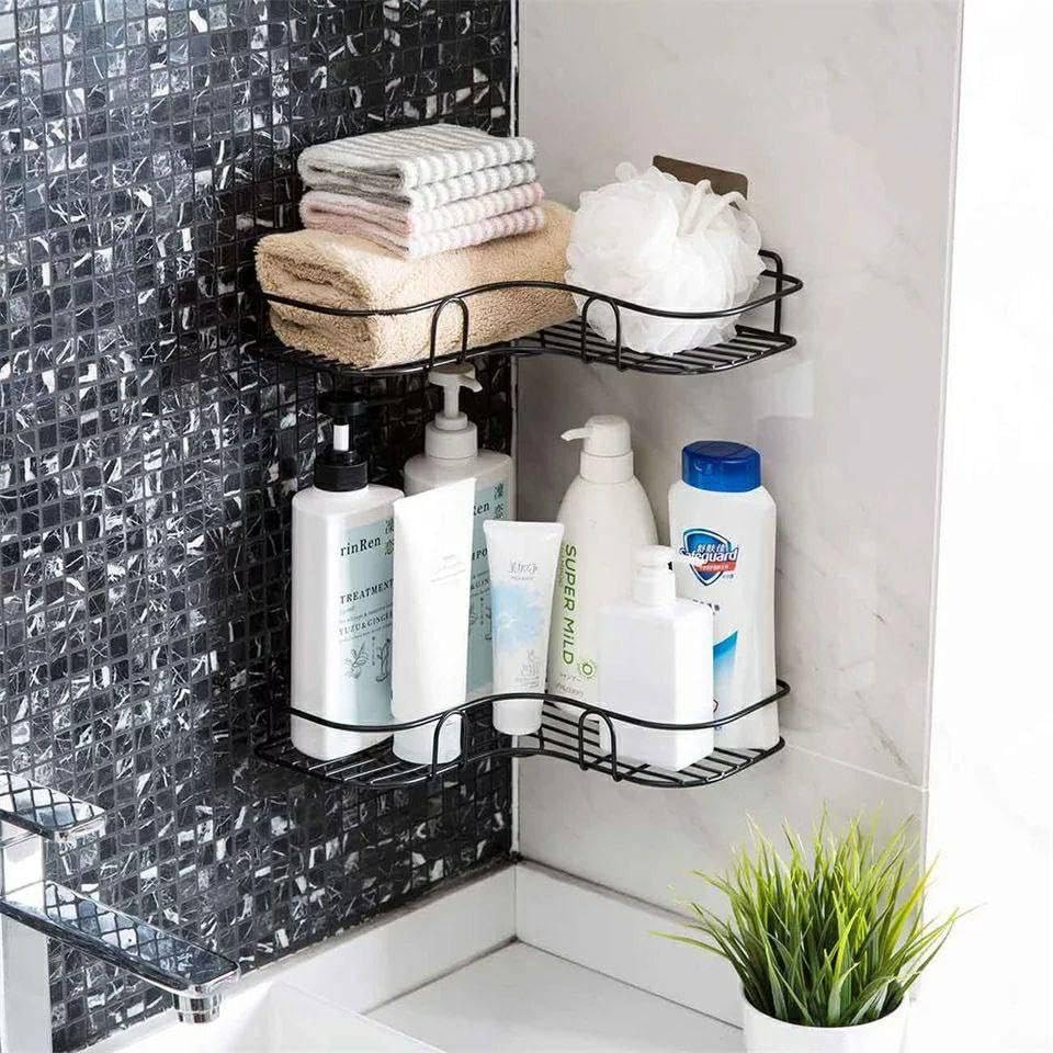 Generic - منظم حمام ذاتي اللصق لا يحتاج إلى ثقب، حامل لزاوية الحمام للشامبو والملحقات - حامل تخزين للمطبخ متعدد الأغراض (لمسة نهائية مطلية بمسحوق) (عبوة من قطعة واحدة)