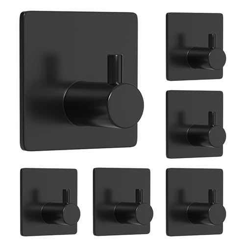 pickpiff - شماعة ذاتية اللصق، خطافات قوية للغاية من بيكيفف، تتحمل حتى 6 كيلو جرام، من الفولاذ المقاوم للصدأ شديد التحمل، لتعليق الفوط والجواكيت والقبعات والشنط في الحمام والمطبخ والدش، أسود - عبوة من 2 قطعة
