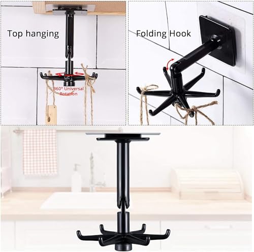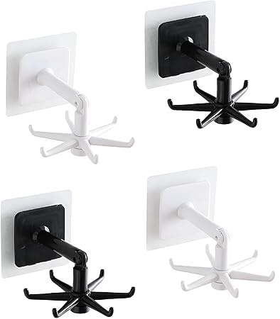 Generic - خطاف دوار ذاتي اللصق 360 درجة بدون حفر، مقاوم للماء، مثالي لتعليق أدوات المطبخ أو الحمام، تثبيت قوي أسفل الخزائن، منظم عملي لتوفير المساحة (4 قطع)