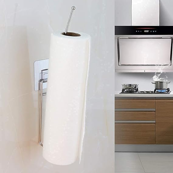 Generic - حامل مناديل ذاتي اللصق من الستانلس ستيل يثبت على الحائط مع وسادة لاصقة سحرية، حامل بكرة مناديل المطبخ، حامل مناديل ورقية، حامل لتعليق الفوط في المطبخ والحمام