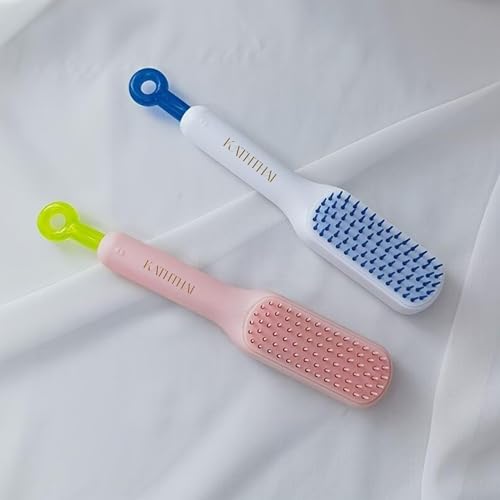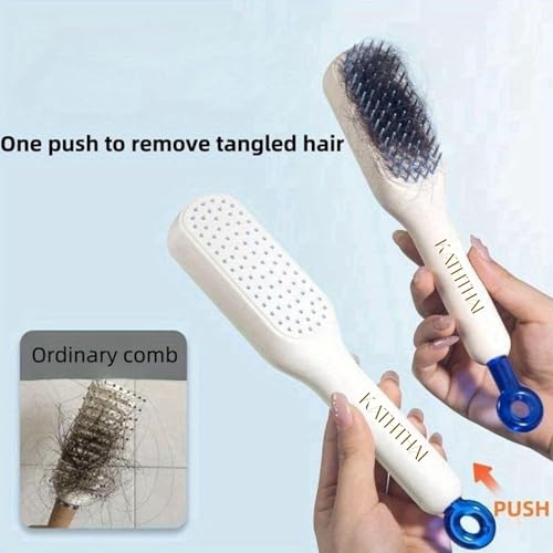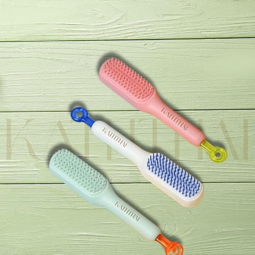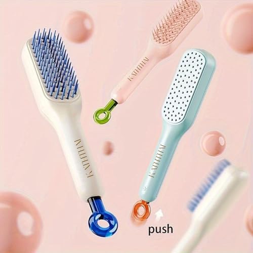 Kaththai - فرشاة شعر ذاتية التنظيف لسهولة التصفيف، مشط تدليك بتقنية مضادة للكهرباء الساكنة، مشط دوار قابل للسحب والتنظيف الذاتي، اداة تصفيف الشعر للنساء (متعددة الالوان)
