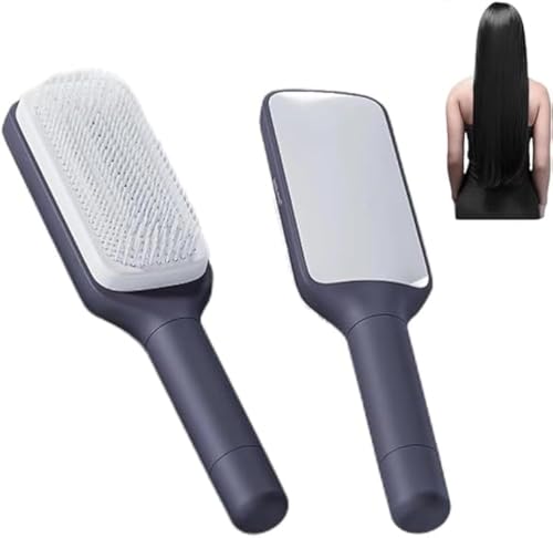 Generic - فرشاة فك تشابك الشعر ذاتية التنظيف للنساء والرجال، فرشاة شعر عضوية دون سحب بتصميم دوار، فرشاة احترافية لفك تشابك الشعر الرطب والجاف (أرجواني) (رمادي)