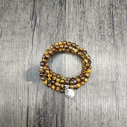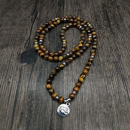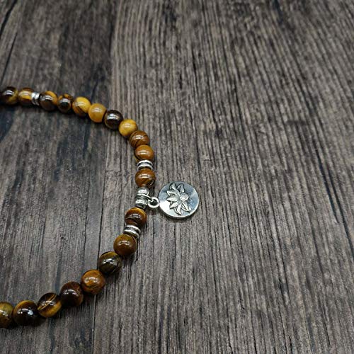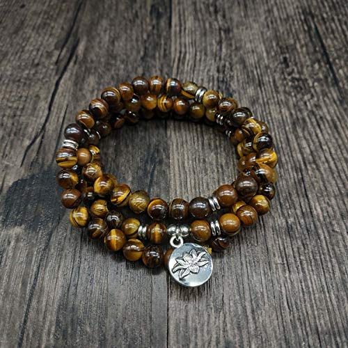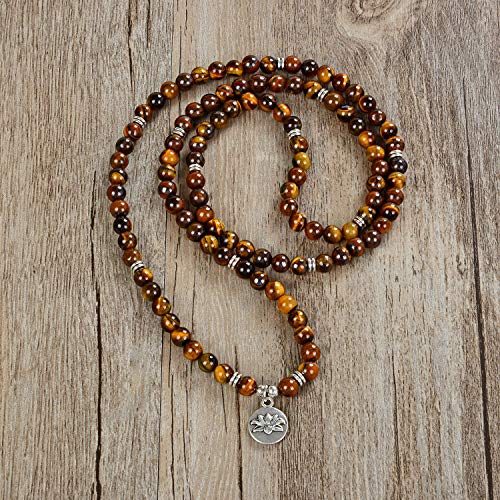 Self-Discovery - سوار مالا بخرز مع دلاية لوتس وخرز حجري صغير 6 ملم من سيلف ديسكافري 108, حجر
