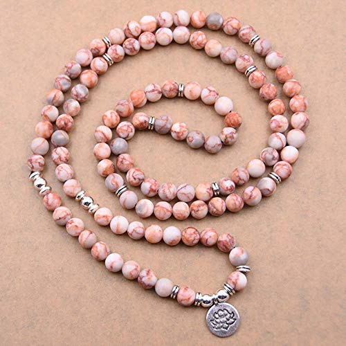 Self-Discovery - سوار مالا يوجا من الخرز الطبيعي 108 مع دلاية بتصميم زهرة اللوتس سيلف ديسكفري حجر