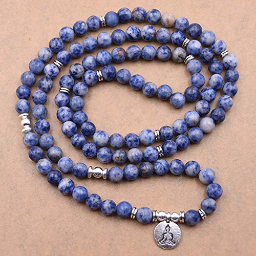 generic - سوار من 108 خرزة مالا الطبيعية من سيلف ديسكفري، مجوهرات التامل مع تعليقة اليوغا (عقيق دانتيل ازرق)