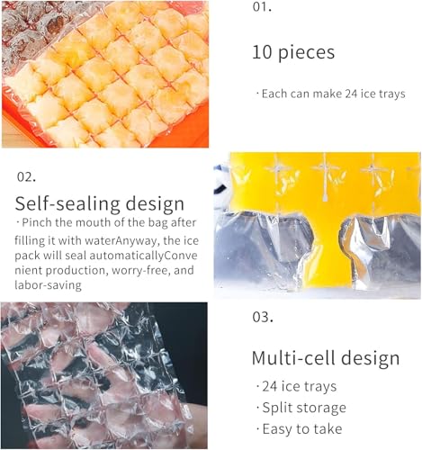 Plan A - أكياس مكعبات ثلج ذاتية الغلق للاستخدام مرة واحدة، تحتوي العبوة على 10 أكياس تكفي لصنع 240 مكعب ثلج. مصممة لتبريد المشروبات والطعام، مرنة، شفافة، مانعة للانسكاب، وسهلة التكديس والفك