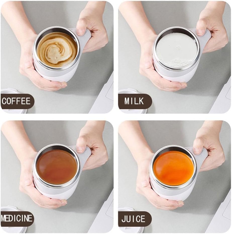 Generic - مج قهوة ذاتي التقليب، كوب خلط أوتوماتيكي مصنوع من الفولاذ المقاوم للصدأ مع غطاء للبن والعصير ومناسب للسفر، سعة 380 مل (أبيض)