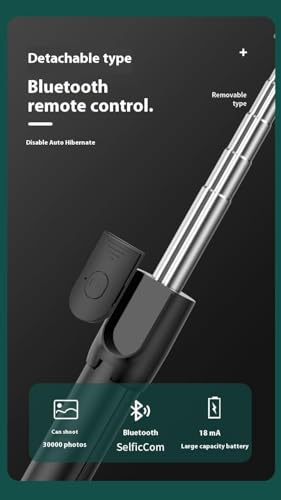 - 【جهاز تحكم قابل للفصل】: تتضمن العصا جهاز تحكم صغير يعمل بالبطارية يمكن فصله عن المقبض بضغطة بسيطة. لتشغيل العصا وجعلها مرئية للموبايل، ما عليك سوى الضغط على الزرار لبضع ثوانٍ لتظهر العصا وتصبح جاهزة للاتصال. بمجرد الاتصال، يمكنك فتح تطبيق الكاميرا على الموبايل لاستخدامه في التقاط صور السيلفي.