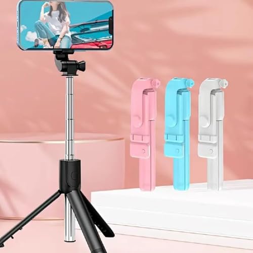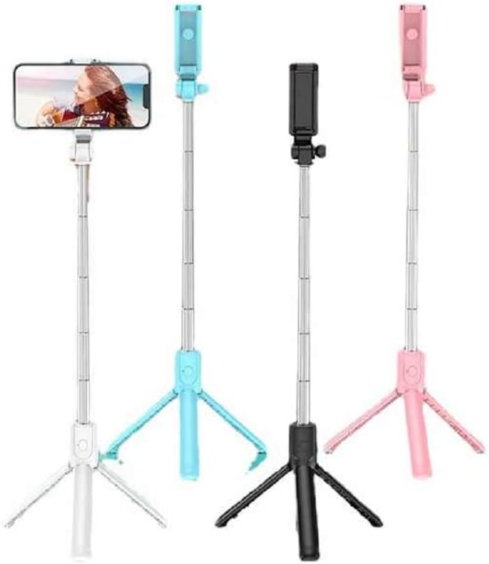 Generic - عصا سيلفي قابلة للتمديد وخفيفة الوزن، حامل ثلاثي القوائم مع جهاز تحكم لاسلكي، حامل موبايل قابل للاستخدام كعصا سيلفي وحامل ثلاثي القوائم متوافق مع آيفون 15 و14 و13 و12 برو وXS ماكس وX8 بلس وسامسونج